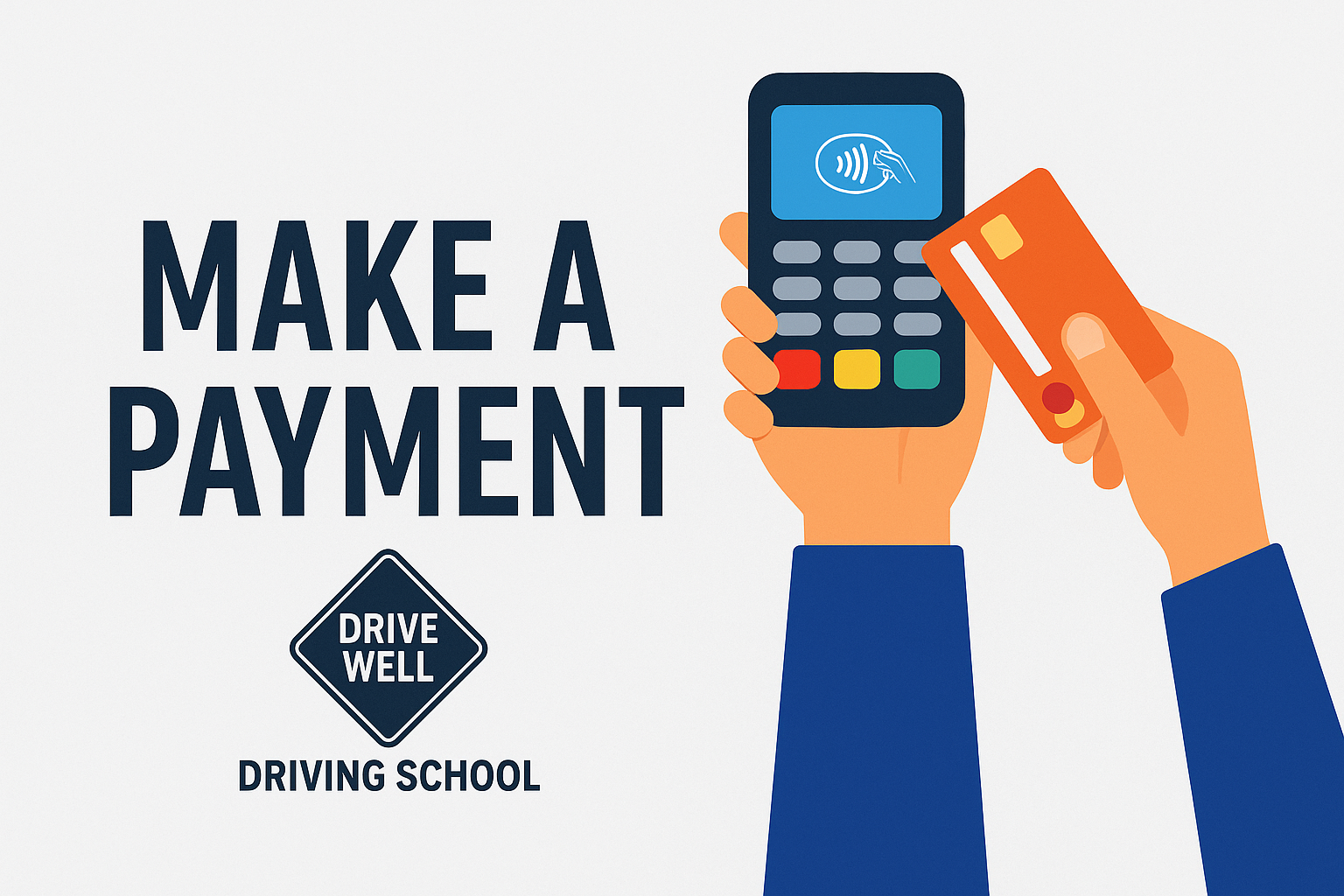 Important: For in-person payments, you may write a check payable to Drive Well Driving School and hand it to your instructor on the first day of lessons. If paying by cash, a receipt will be provided at the time of payment.